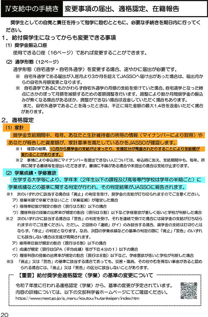 ・給付奨学生採用候補者のしおり P20【2.適格認定】(以下添付画像)